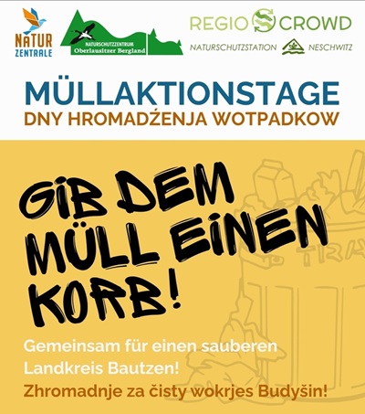 Vom 2. bis 29. März 2026 finden im Landkreis Bautzen die Müllaktionstage unter dem Motto "Gib dem Müll einen Korb!" statt.                                                                                                                                                                                                                                                                                                    Organisiert wird die Initiative von der Naturzentrale gemeinsam mit der Naturschutzstation Neschwitz e. V., dem Naturschutzzentrum "Oberlausitzer Bergland" e. V. sowie dem Abfallamt des Landkreises Bautzen.